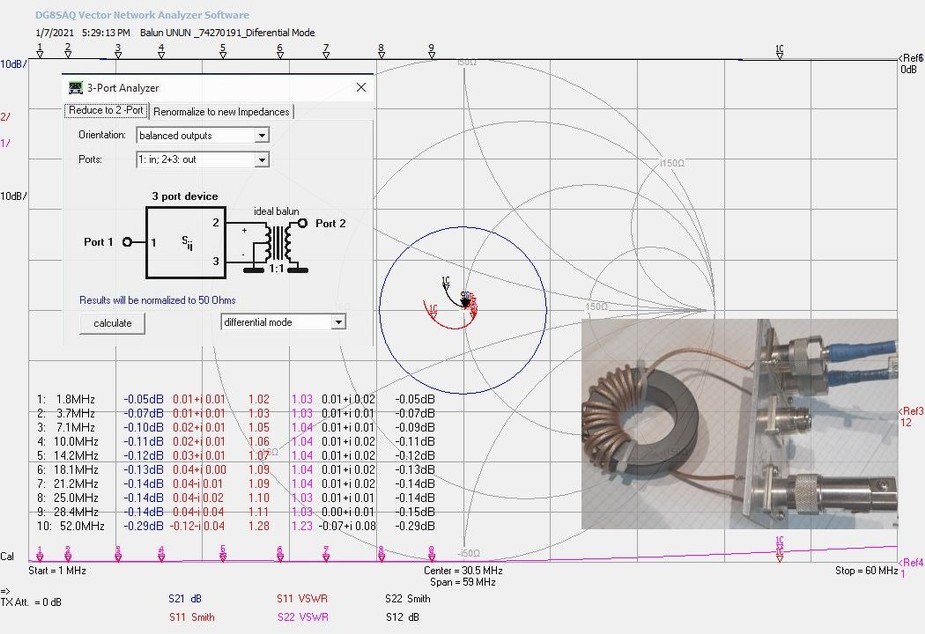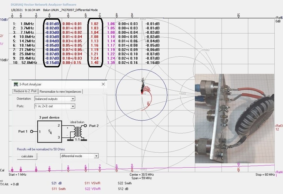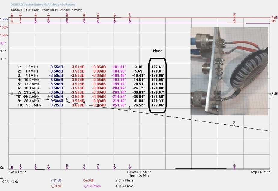 SWR-ul si atenuarea de insertie sun un pic mai mari in zona 30-50Mnz, dar asta se datoreaza bobinajului care nu este realizat prea simetric! Am avut la masuratori un balun construit de YO7LAT, Nicu. Arata perfect pana in 60Mhz!...dar cum am spus, depinde cat de ingrijit bobinam pe tor.